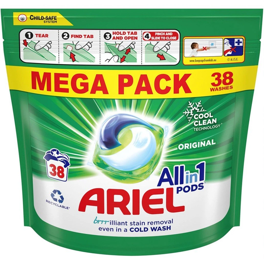 قرص ماشین لباسشویی آریل all in 1 pods مدل mega pack بسته ۳۸ عددی