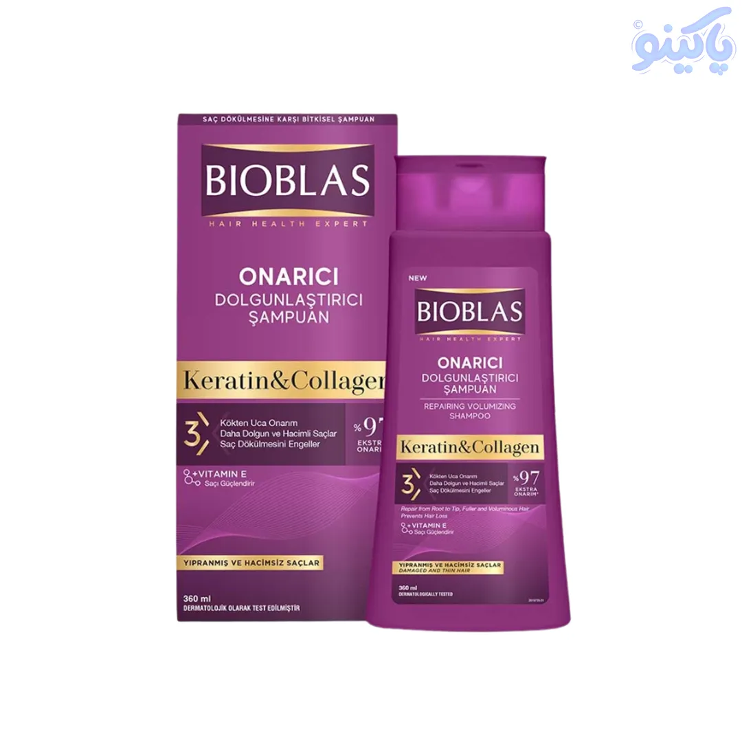 شامپو ضد ریزش مو بیوبلاس حاوی کلاژن و کراتین حجم 360 میل